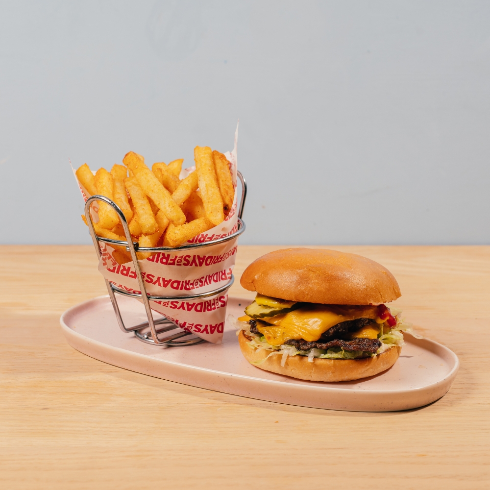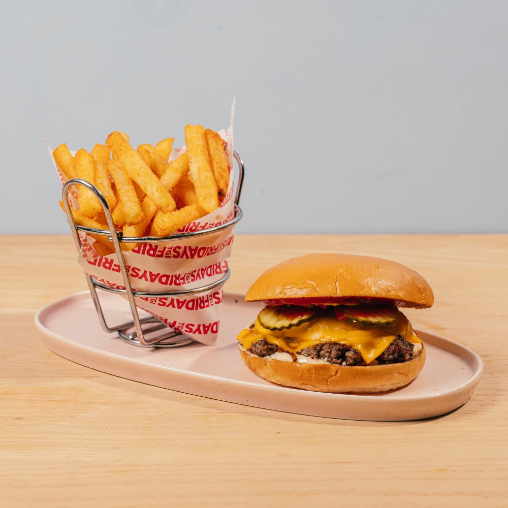 Smash patty, caramelised onion, American-style cheese, ketchup, mustard, aioli, pickles.